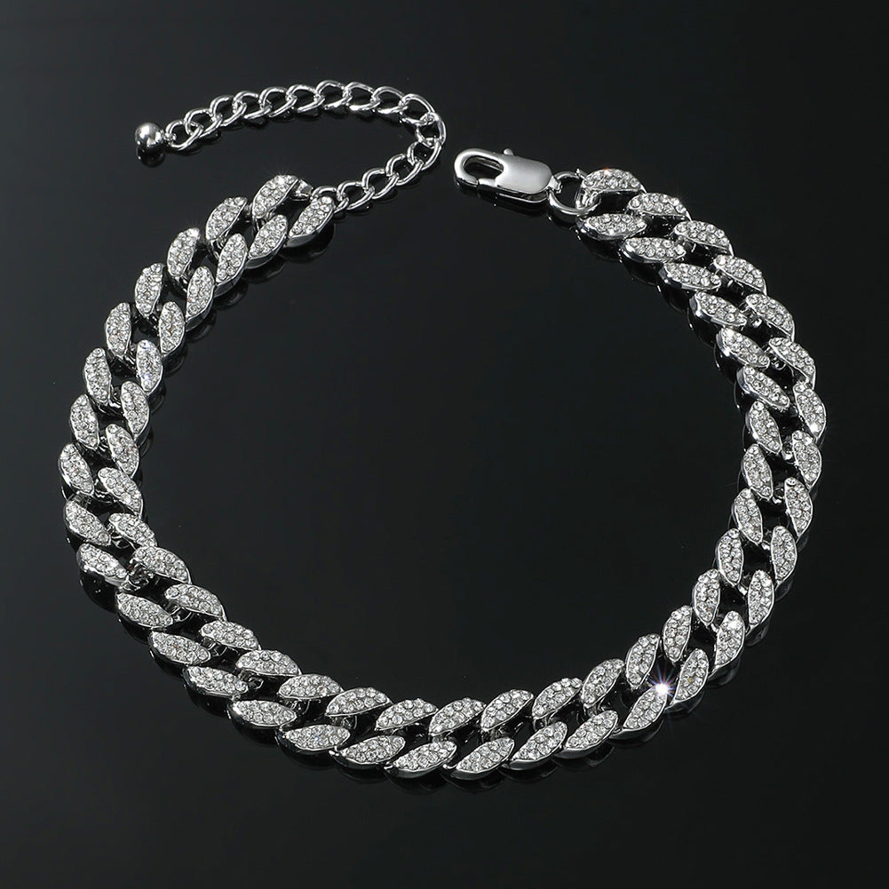✨ Diese auffällige Fußkette im kubanischen Kettenstil kombiniert Hip-Hop-Flair mit kreativem Design. Vollständig mit funkelndem Strass besetzt, ist sie das ideale Accessoire für stilbewusste Männer und eignet sich perfekt als Geschenk zu besonderen Anlässen.